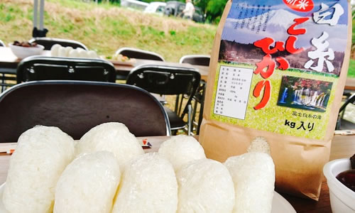 「平成棚田」で収穫されるお米は、富士山の麓の美味しい空気、清涼な湧水に恵まれた素晴らしい環境の中で収穫される「白糸コシヒカリ」というブランド米です。